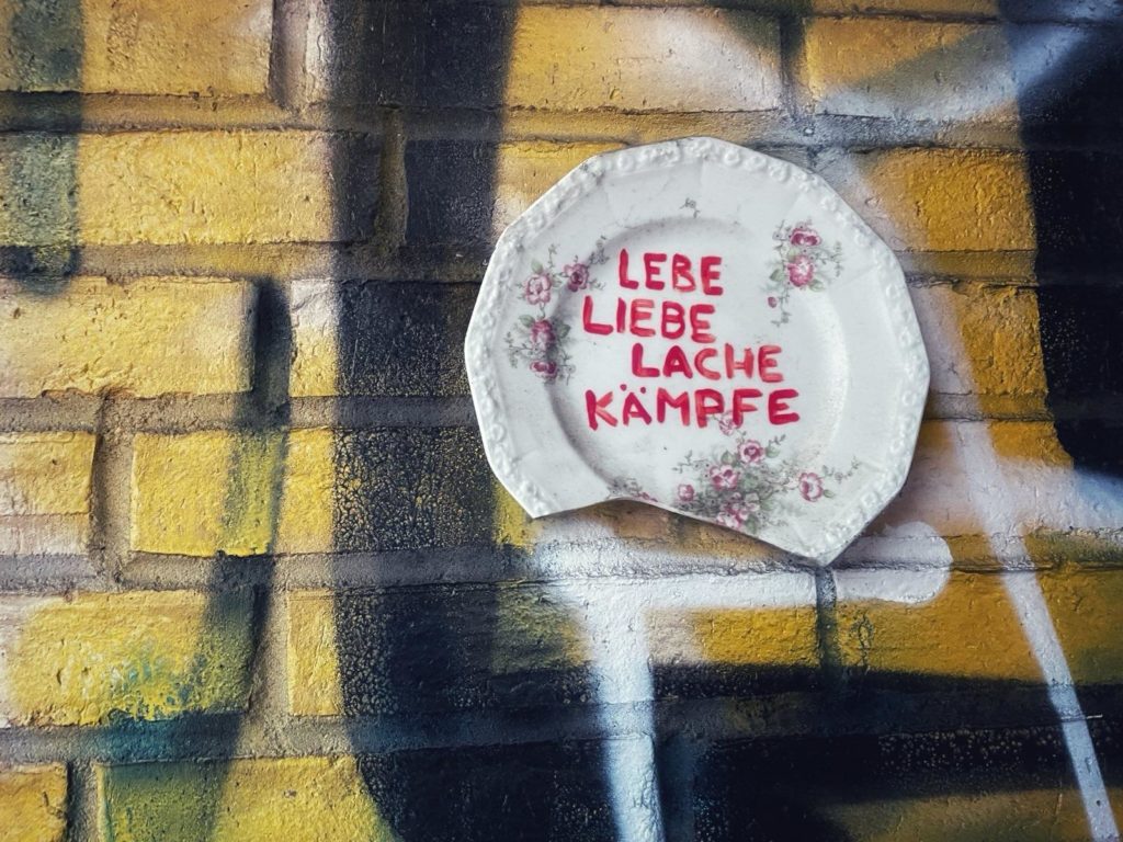 Ich habe auf meinen Wegen meist ein waches Auge für kleine Kunstwerke oder Botschaften, die oft leicht verborgen, in Hauseingängen oder Einfahrten, nicht immer unbedingt auf Augenhöhe, auf ihre Entdeckung warten. Dann fühle ich mich angeregt oder nachdenklich. Manchmal verstanden. Ich lasse mich gerne überraschen. Natürlich hängt das auch an der Intention und Mühe, die ich hinter den Mikro-Werken erkenne. Nicht selten finde ich halb verfallene Wände und dreckige Ecken so durchaus veredelt mit eigenwillig gestalteten Impulsen. Im besten Fall reist der Gedanke dann noch eine Weile mit, wenn ich nach einem kurzen Fotostop auf dem Fahrrad weiterfahre.